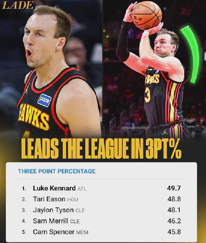 目前為止,湖人以30勝19負位列西部第六,期間場均三分出手數34.1次以及三分命中數11.9個均排名聯盟第23,三分命中率34.9%則排在第22名,全隊投射中下遊水平,這就是他們引進肯納德的原因。
