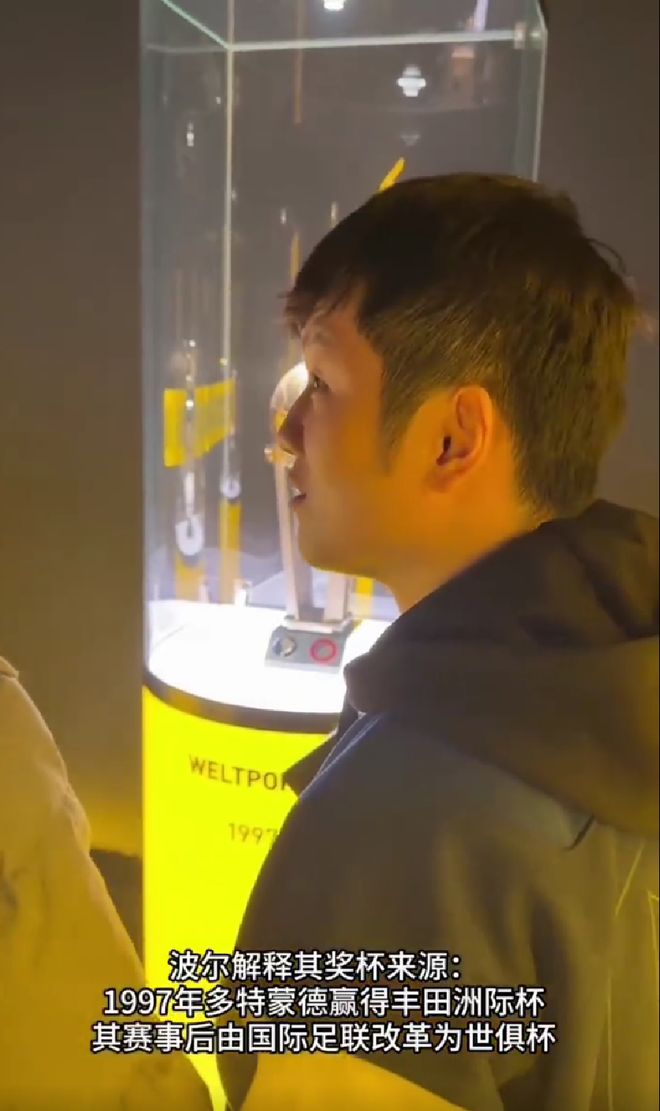 比賽開始之前,波爾帶著樊振東去多特蒙德的獎杯陳列室參觀,首先映入眼簾的是歐冠獎杯,1997年多特蒙德。在1997年歐冠決賽,多特蒙德在慕尼黑奧林匹克球場以3-1戰勝尤文圖斯,首奪歐冠冠軍,也是德甲曆史上除拜仁外唯一奪得過歐冠的球隊。